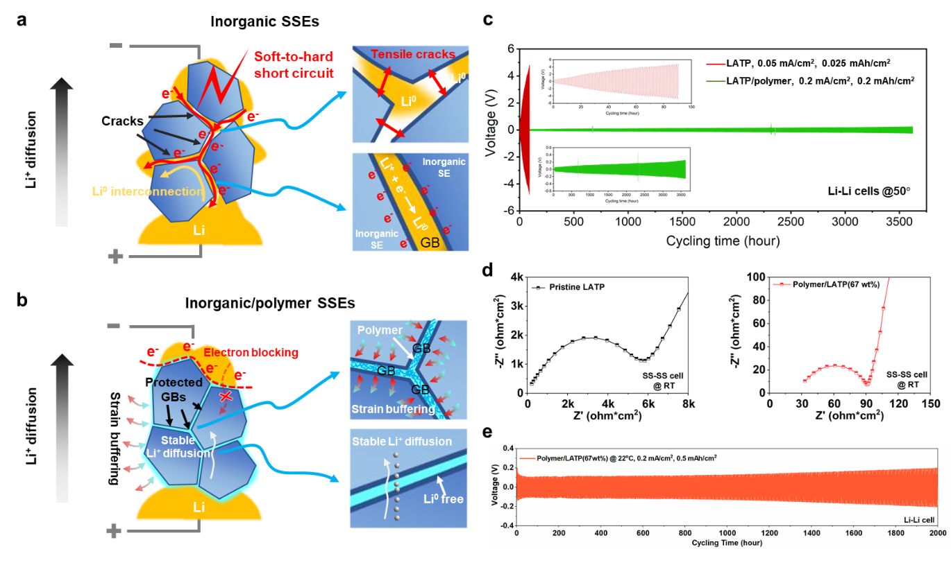 圖1. 無機固態(tài)電解質(zhì)中的軟短路—硬短路轉(zhuǎn)變機制示意圖以及其抑制機理
