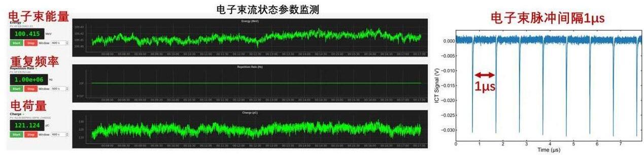目前,該束流測試平臺已實現(xiàn)0.1毫安平均流強電子束流的穩(wěn)定加速運行。具體技術指標包括:電子束流能量大于1億電子伏特、單脈沖電荷量大于100皮庫、重復頻率為1百萬赫茲,整個平臺穩(wěn)定運行持續(xù)1小時,束流能量穩(wěn)定性優(yōu)于0.01%(RMS)。