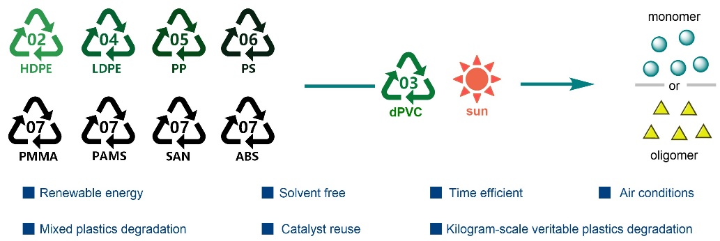 近日,大連化物所仿生催化合成研究組(211組)陳慶安研究員團(tuán)隊(duì)在聚烯烴塑料回收方面取得新進(jìn)展,開發(fā)出以廢聚氯乙烯(PVC)為光熱試劑原料、以太陽能為能源的聚烯烴光熱回收新技術(shù),為聚烯烴光熱回收提供了新思路。