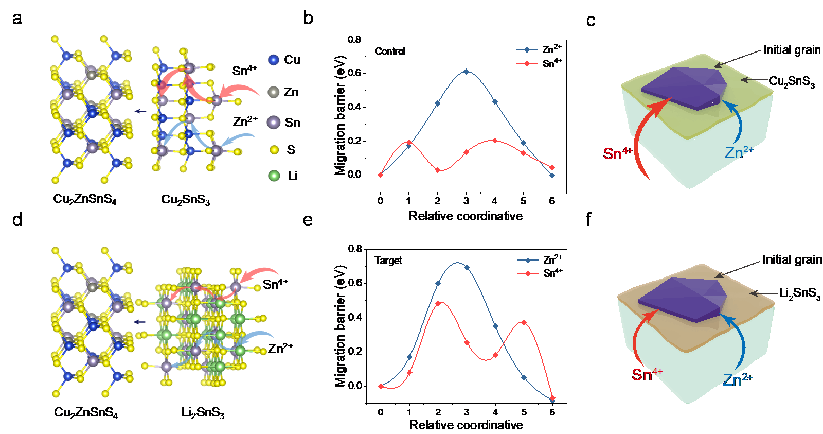 近日,青島能源所固態(tài)能源系統(tǒng)技術(shù)中心在崔光磊研究員帶領(lǐng)下,由邵志鵬、崔長城博士等圍繞CZTSSe光伏硒化相變過程中“金屬離子遷移不可控”這一核心技術(shù)難題,提出了Li?SnS?界面相平衡調(diào)控金屬離子遷移、進(jìn)而輔助晶粒相變生長的新機(jī)制,攻克了CZTSSe光伏相變不可控制、開路電壓偏低、光電轉(zhuǎn)換效率不足等系列科學(xué)與技術(shù)難題。