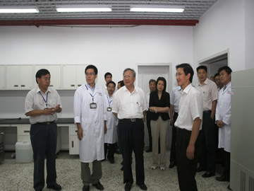 中國科學(xué)院辦公廳主任蔣協(xié)助、院地合作局局長戚強(qiáng)、沈陽分院院長包信和、高技術(shù)研究與發(fā)展局副局長劉桂菊、生命科學(xué)與生物技術(shù)局副局長蘇榮輝、蘭州化學(xué)物理研究所所長劉維民,青島市人大常委會(huì)副秘書長紀(jì)高尚、青島市科技局局長王安民,研究所籌建組組長王利生、副組長趙汐潮、魏東芝、彭輝陪同視察。