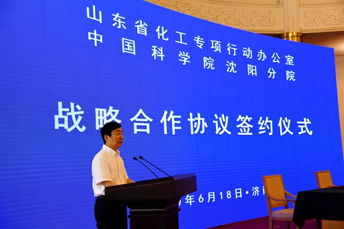 為進一步落實院省推進山東新舊動能轉換重大工程合作協(xié)議,推動山東省化工產(chǎn)業(yè)轉型升級和高質量發(fā)展,6月18日,中科院沈陽分院與山東省化工專項行動辦舉行戰(zhàn)略合作協(xié)議簽約儀式。山東省副省長凌文參加會見。沈陽分院院長韓恩厚、副院長馬越紅,中國工程院院士、中科院大連化學物理研究所所長劉中民,中科院青島生物能源與過程研究所黨委書記彭輝,山東省化工專項行動辦專職副主任李莎及各市化專辦、化工園區(qū)負責人參加簽約活動。