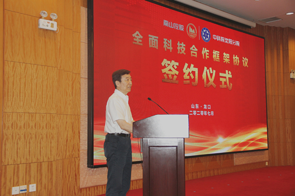 韓恩厚感謝煙臺(tái)市、龍口市政企單位多年來(lái)對(duì)中科院科技合作的大力支持,介紹了沈陽(yáng)分院的總體情況以及推進(jìn)院省合作取得的進(jìn)展與成效。他表示沈陽(yáng)分院將一如既往的發(fā)揮中科院技術(shù)創(chuàng)新和人才集聚優(yōu)勢(shì),與南山控股一起開展高起點(diǎn)、多領(lǐng)域、全方位的合作,促進(jìn)更多中科院技術(shù)成果在南山控股轉(zhuǎn)移轉(zhuǎn)化,為助推新舊動(dòng)能轉(zhuǎn)換和高質(zhì)量發(fā)展作出應(yīng)有貢獻(xiàn)。