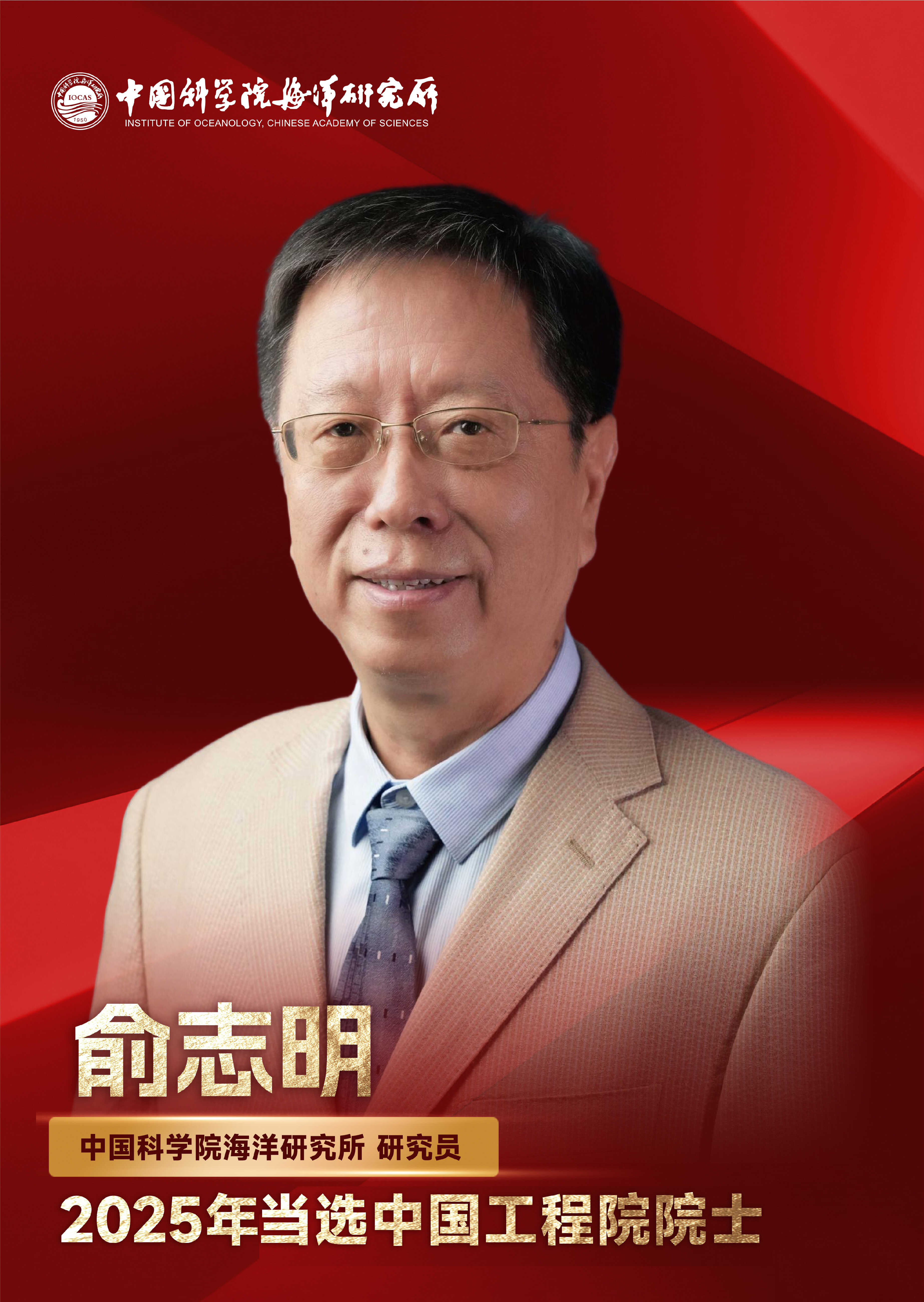 11月21日,中國工程院發(fā)布2025年院士增選結(jié)果,中國科學(xué)院海洋研究所俞志明研究員當(dāng)選中國工程院院士。
