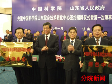 1月15日,中國(guó)科學(xué)院與山東省人民政府共建中國(guó)科學(xué)院山東綜合技術(shù)轉(zhuǎn)化中心簽約揭牌儀式暨第一次理事會(huì)會(huì)議在濟(jì)南舉行。中科院副院長(zhǎng)施爾畏,山東省省委常委、副省長(zhǎng)王軍民,中科院、山東省有關(guān)單位的領(lǐng)導(dǎo)和代表70余人參加了儀式。儀式由山東省科技廳廳長(zhǎng)翟魯寧主持。