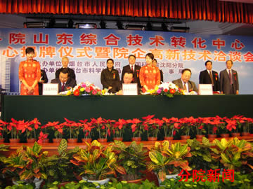 3月31日,由中科院沈陽分院、山東省科學(xué)院和煙臺市人民政府共同建立的“中科院山東綜合技術(shù)轉(zhuǎn)化中心煙臺中心”揭牌儀式在煙臺舉行。中科院副院長施爾畏、副秘書長鄧麥村、院地合作局局長戚強、沈陽分院院長王慶禮、山東省科學(xué)院院長王天義、山東省科技廳副廳長王家利、煙臺市常務(wù)副市長郝德軍、市人大副主任劉筱杰、副市長張廣波出席了揭牌儀式。