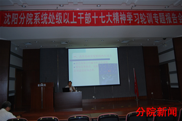 為積極落實(shí)院《關(guān)于做好處級以上干部學(xué)習(xí)貫徹黨的十七大精神集中輪訓(xùn)工作的通知》文件要求,把學(xué)習(xí)貫徹黨的十七大精神同密切聯(lián)系本地區(qū)的工作與思想實(shí)際相結(jié)合,用十七大精神武裝頭腦、指導(dǎo)實(shí)踐,大力推動沈陽分院地區(qū)工作為出發(fā)點(diǎn)和落腳點(diǎn)。沈陽分院于6月20日下午,在金屬研究所學(xué)術(shù)報(bào)告廳舉行了黨的十七大精神輪訓(xùn)輔導(dǎo)報(bào)告會,這是沈陽分在2008年舉辦的第二次集體學(xué)習(xí)。沈陽分院系統(tǒng)在沈各單位的所級領(lǐng)導(dǎo)、黨支部書記及處級以上黨員干部120余人出席了報(bào)告會。