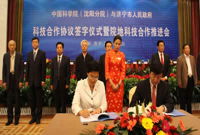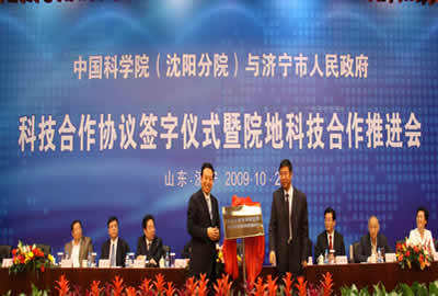 2009年10月20日,中國科學(xué)院沈陽分院與濟寧市人民政府科技合作協(xié)議簽字儀式暨院地科技合作推進會在濟寧召開。中科院院地合作局局長戚強,中科院沈陽分院副院長韓恩厚,山東省科技廳副廳長、中科院山東綜合技術(shù)轉(zhuǎn)化中心主任王曉斌,中科院沈陽計算公司董事長林滸,中科院大連化物所、金屬所、沈陽自動化所、沈陽應(yīng)用生態(tài)所、海洋所、沈陽計算公司、力學(xué)所、過程所、理化所、植物所、微生物所、生態(tài)環(huán)境中心、遺傳發(fā)育所農(nóng)業(yè)發(fā)展中心(原石家莊農(nóng)業(yè)現(xiàn)代化所)、上海生科院、蘭州化物所、長春光機所、長春應(yīng)化所、中科院老專家技術(shù)中心等18個單位的41位專家和濟寧市委、市政府、市人大、市政協(xié)的有關(guān)領(lǐng)導(dǎo)、濟寧市的100余家企業(yè)的技術(shù)人員和領(lǐng)導(dǎo)參加了會議。