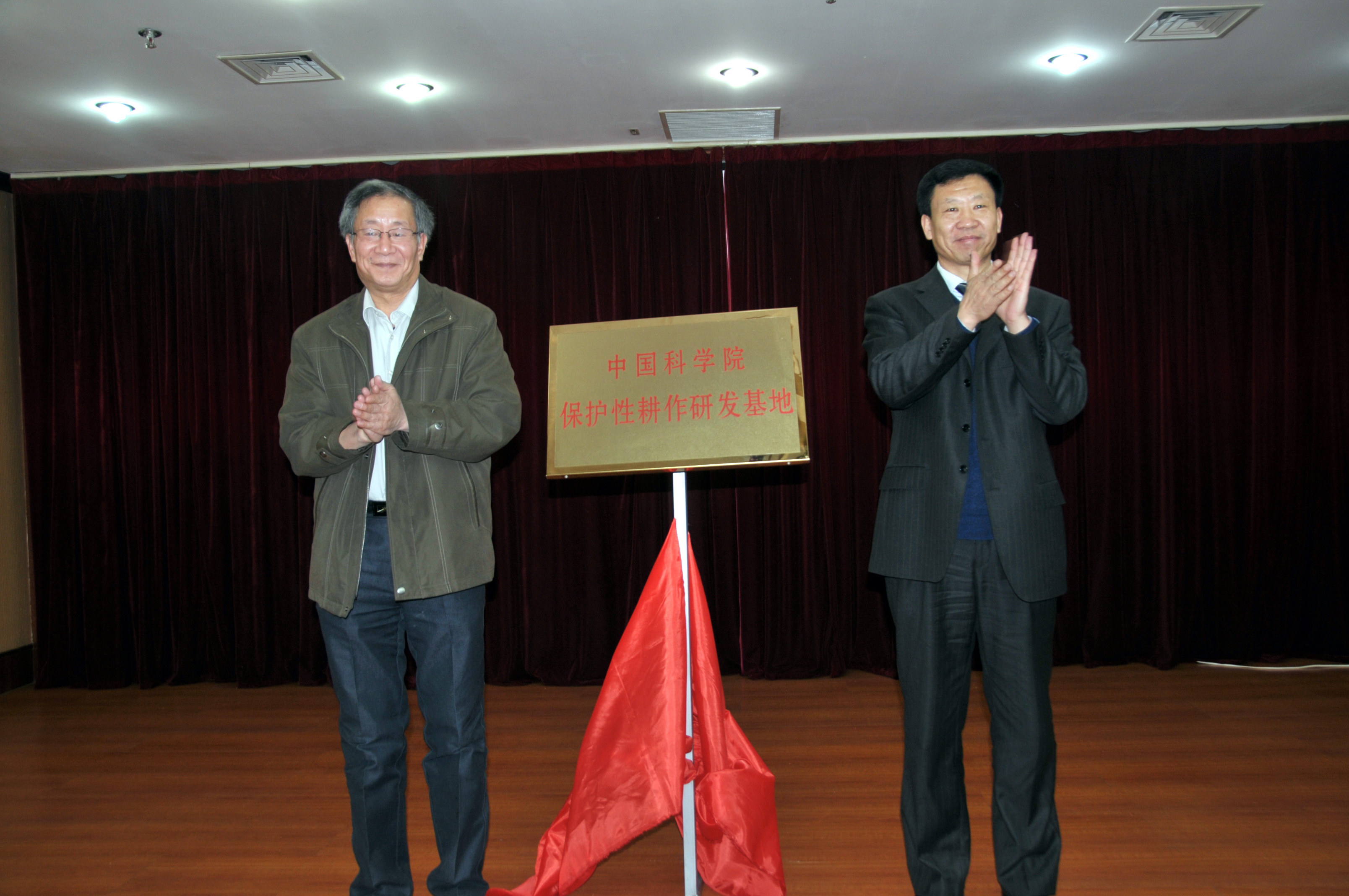 沈陽(yáng)生態(tài)所所長(zhǎng)韓興國(guó)、梨樹縣委書記李有昌、吉林省農(nóng)業(yè)委員會(huì)科教處長(zhǎng)肖珍武分別在開(kāi)幕式上致辭。梨樹縣副縣長(zhǎng)王柏仲主持了中國(guó)科學(xué)院保護(hù)性耕作研發(fā)基地揭牌儀式,韓興國(guó)所長(zhǎng)和李有昌書記分別代表中科院沈陽(yáng)生態(tài)所和梨樹縣為基地啟動(dòng)揭牌。