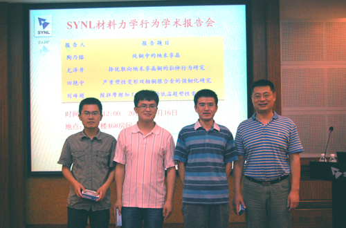 沈陽材料科學國家(聯(lián)合)實驗室舉辦的以材料力學行為為主題的“SYNL材料力學行為學術報告會”已順利舉辦兩期,并得到了所內廣大師生的積極響應和參與,第三期報告會于7月16日上午在李薰樓468房間順利舉行,共有近百名師生參加了本次會議。其中,訪問金屬所的美國北卡羅來納州立大學的Zhu Yuntian教授也參加了報告會,與報告人進行積極交流。同時,國家自然科學基金重大項目的參加單位之一浙江大學也派遣研究生來參加本次報告會,會議之后還與相關人員進行了交流討論。