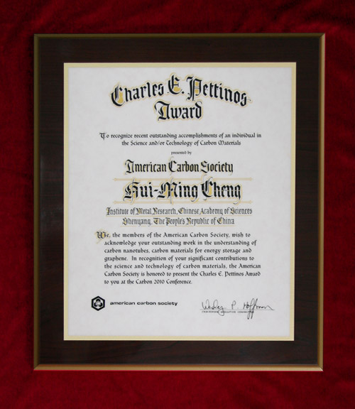 成會(huì)明研究員榮獲美國(guó)碳學(xué)會(huì)Charles E. Pettinos獎(jiǎng)