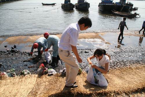 2010年7月16日,大連新港中石油輸油管道發(fā)生爆炸事故,并造成大面積海域、海灘和礁石污染。事故發(fā)生后,中國科學院相關(guān)單位迅速響應,積極應對。沈陽分院及時成立了以包信和院長為組長的大連海域原油污染治理工作小組,有效整合院內(nèi)研究力量,并積極與地方聯(lián)絡(luò)和溝通。大連化物所成立了以張濤所長為組長的應急治污工作小組,提出了海岸油污清理方案得到大連市采納,并進行現(xiàn)場技術(shù)指導,受大連市政府委托對清污化學清潔劑的使用科學把關(guān),避免造成二次污染。海洋所成立了以張國范副所長為組長、20余位專家組成的應急科技工作隊,迅速啟動黃海海洋觀測研究網(wǎng)絡(luò),開展溢油應急災害海洋環(huán)境調(diào)查。