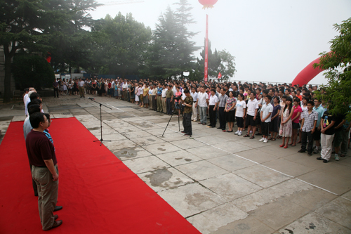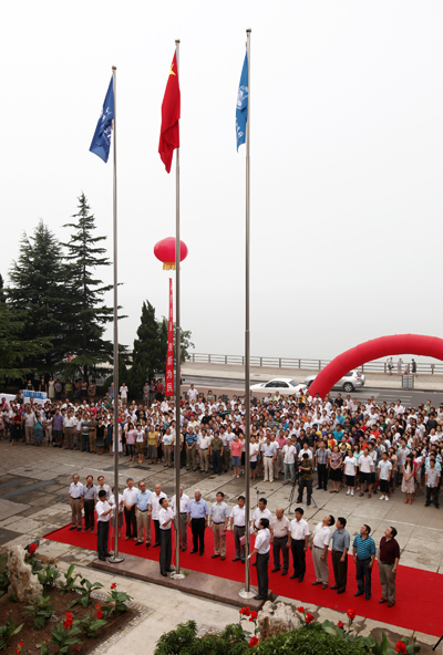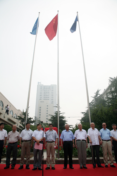 在莊嚴的國歌聲中,國旗、院旗和所旗在充滿希望的晨曦里相繼冉冉升起,大家滿懷深情和喜悅莊重地行注目禮。