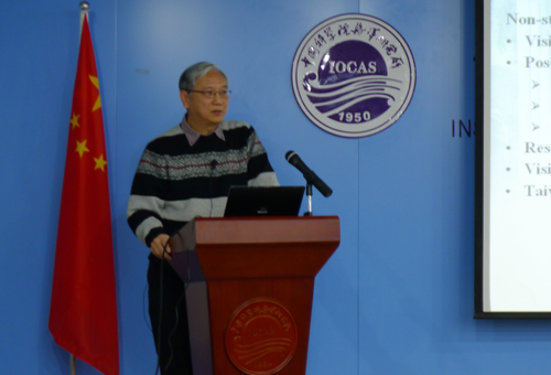 Peter G. Brewer 教授結合相關的研究成果對美國MBARI海洋研究所的海洋科學研究與技術創(chuàng)新結合的研究特色作了論述;George T F Wong教授介紹了臺灣中央研究院環(huán)境變化研究中心的概況并就其研究所近期的研究熱點進行了綜述。