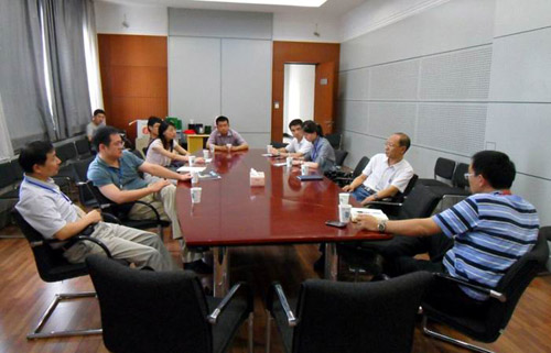 圖3 李巨教授、John Hopkins大學(xué)馬恩教授和西安交通大學(xué)單智偉教授等在鈦合金研究部進(jìn)行交流