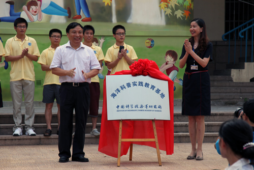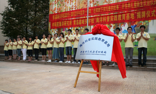 9月1日,在青島嘉峪關(guān)小學2011—2012學年度第一學期開學典禮暨升旗儀式上,中科院海洋所——青島市嘉峪關(guān)小學“海洋科普實踐教育基地”正式揭牌。