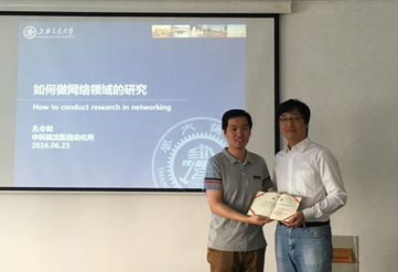 來(lái)訪期間,孔令和為沈陽(yáng)自動(dòng)化所科研人員作了題為《如何做網(wǎng)絡(luò)領(lǐng)域的研究》的報(bào)告。他分別從研究方向的選擇、題目的選取、方案的設(shè)計(jì)以及論文的寫(xiě)作四個(gè)方面對(duì)學(xué)術(shù)研究的方法進(jìn)行了詳細(xì)的講解。隨后,孔令和回答了現(xiàn)場(chǎng)科研人員和研究生的提問(wèn),并與之進(jìn)行了熱烈的交流和探討。