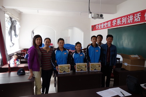 金昌杰一行首先到“教育扶貧”對(duì)口試點(diǎn)單位——朝陽鎮(zhèn)九年一貫制學(xué)校進(jìn)行調(diào)研,在朝陽鎮(zhèn)委書記李峰同志的陪同下,實(shí)地了解了學(xué)校的總體建設(shè)情況,以及由分院系統(tǒng)扶貧基金資助的學(xué)?;A(chǔ)設(shè)施的改造完善情況。工作小組中的三名“兼職輔導(dǎo)員”還與對(duì)口聯(lián)系和幫扶的學(xué)生進(jìn)行了面對(duì)面的交流,并向?qū)W生贈(zèng)送名著等課外讀物,鼓勵(lì)學(xué)生好好學(xué)習(xí),健康成長。