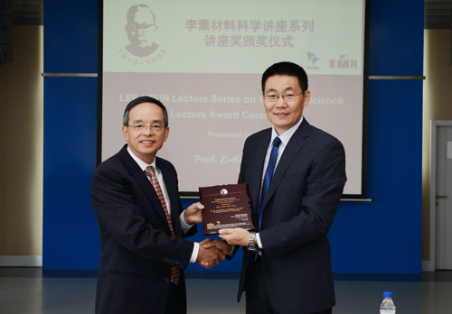 張健副所長為Zi-Kui Liu教授頒發(fā)李薰講座獎獎牌