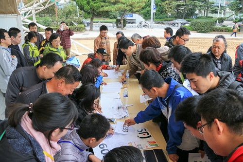 運(yùn)動員在檢錄處檢錄