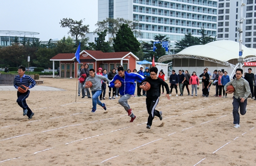 本屆沙灘運(yùn)動會共設(shè)60米跑、60米吊瓶跑、60米托球跑、60米二人三足、60米 5人籃球接力跑、籃球射門、鉛球、地滾球、一分鐘跳繩、立定跳遠(yuǎn)、套圈比賽等11個比賽項(xiàng)目,分為職工組和研究生組進(jìn)行比賽,共吸引850余人報(bào)名參加。