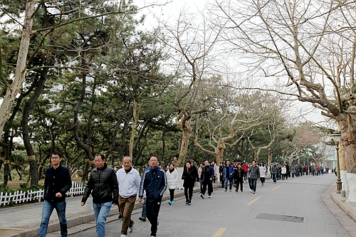 10點整,匯泉灣畔陽光燦爛,空氣清新,海洋所全體人員在西門集合整裝待發(fā)。隨著發(fā)號口令的響起,大家從西門出發(fā),按照制定的健步走路線,沿著八大關(guān)海濱木棧道行進。本次健步走活動路線共分為兩段,第一段從海洋所西門行至第二海水浴場花石樓后原路折返;第二段沿花石樓繼續(xù)向前,到達第三海水浴場后折返。大家可根據(jù)自己的身體狀況選擇適合的路線,人性化的設計吸引了更多的職工積極參與。