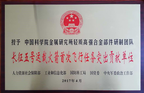 金屬所輕質(zhì)高強(qiáng)合金部件研制團(tuán)隊(duì)獲“長(zhǎng)征五號(hào)運(yùn)載火箭首次飛行任務(wù)突出貢獻(xiàn)單位”榮譽(yù)稱號(hào),為科學(xué)院唯一獲此榮譽(yù)單位。參加長(zhǎng)征五號(hào)運(yùn)載火箭研制任務(wù)的輕質(zhì)高強(qiáng)合金部件研制團(tuán)隊(duì)包括:楊銳、徐磊研究員的“Ti-5Al-2.5Sn ELI粉末冶金氫泵葉輪”項(xiàng)目組,陳榮石、韓恩厚研究員的“高強(qiáng)鎂合金慣組支架”項(xiàng)目組,戎利建研究員、王本賢副研究員的“GH4169大口徑薄壁管材、鍛件”項(xiàng)目組。