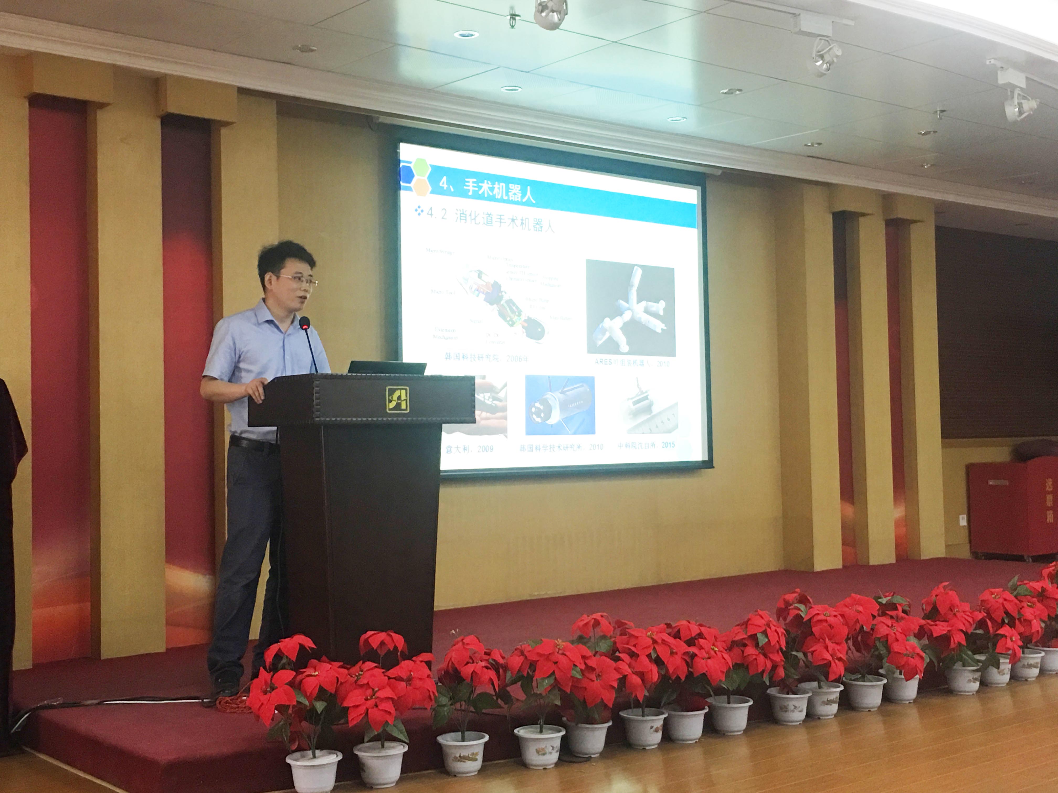 活動期間,沈陽自動化所副研究員劉浩、李棟分別帶來了題為《走進醫(yī)療機器人——人類健康的守護者》和《Made in China的智能制造》的科普報告。報告廳座無虛席,在認真聆聽報告之后,現(xiàn)場觀眾與兩位科研人員進行了互動問答,現(xiàn)場氣氛十分熱烈。沈陽自動化所還在影音教室準備了專門面向低年齡段觀眾的機器人科普報告,全天循環(huán)講解。