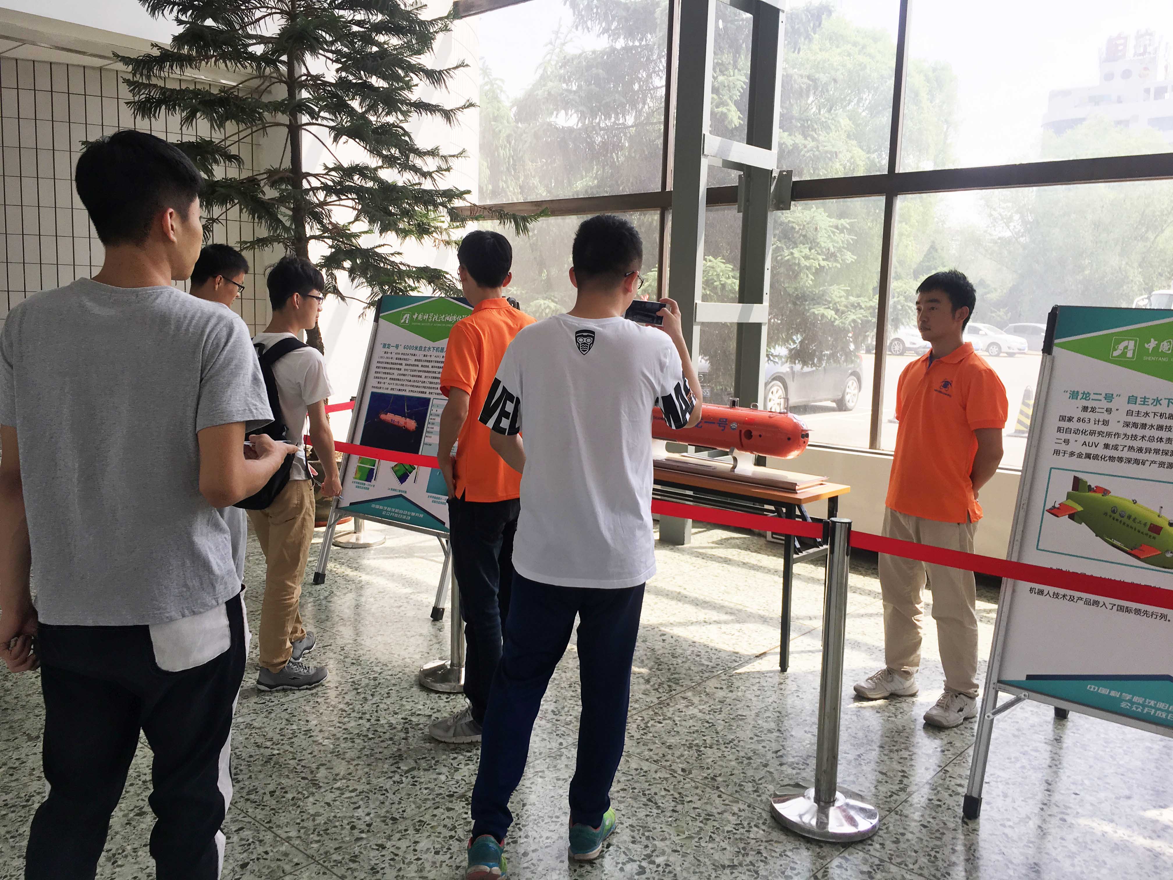 沈陽自動化所機器人、光電信息技術(shù)和智能制造三個學科方向代表性成果均在活動中與社會公眾見面。在R樓一樓“機器人展區(qū)”,“潛龍一號”AUV、“潛龍二號”AUV、“海斗”號自主水下機器人、“海翼”號水下滑翔機、“龍珠”號ROV和“探索100”小型自主水下機器人的實物或模型亮相;光電信息技術(shù)、智能制造技術(shù)和微納米機器人等成果通過展板向觀眾進行了展示。在A樓,開放了研究所科技成果展館,并“邀請”到了新松公司“松果”服務機器人與觀眾進行互動。
