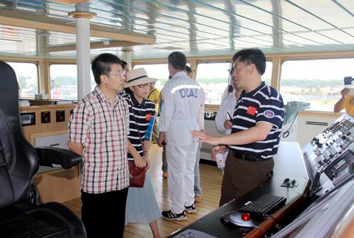 中國駐密克羅尼西亞大使李杰攜夫人及大使館工作人員、援外工作人員代表等到“科學(xué)”號進(jìn)行了參觀。中科院海洋所船舶中心主任李雷溪、工程技術(shù)部主任刁新源、船長陳修峰及全體船隊(duì)員接待了李杰大使一行。