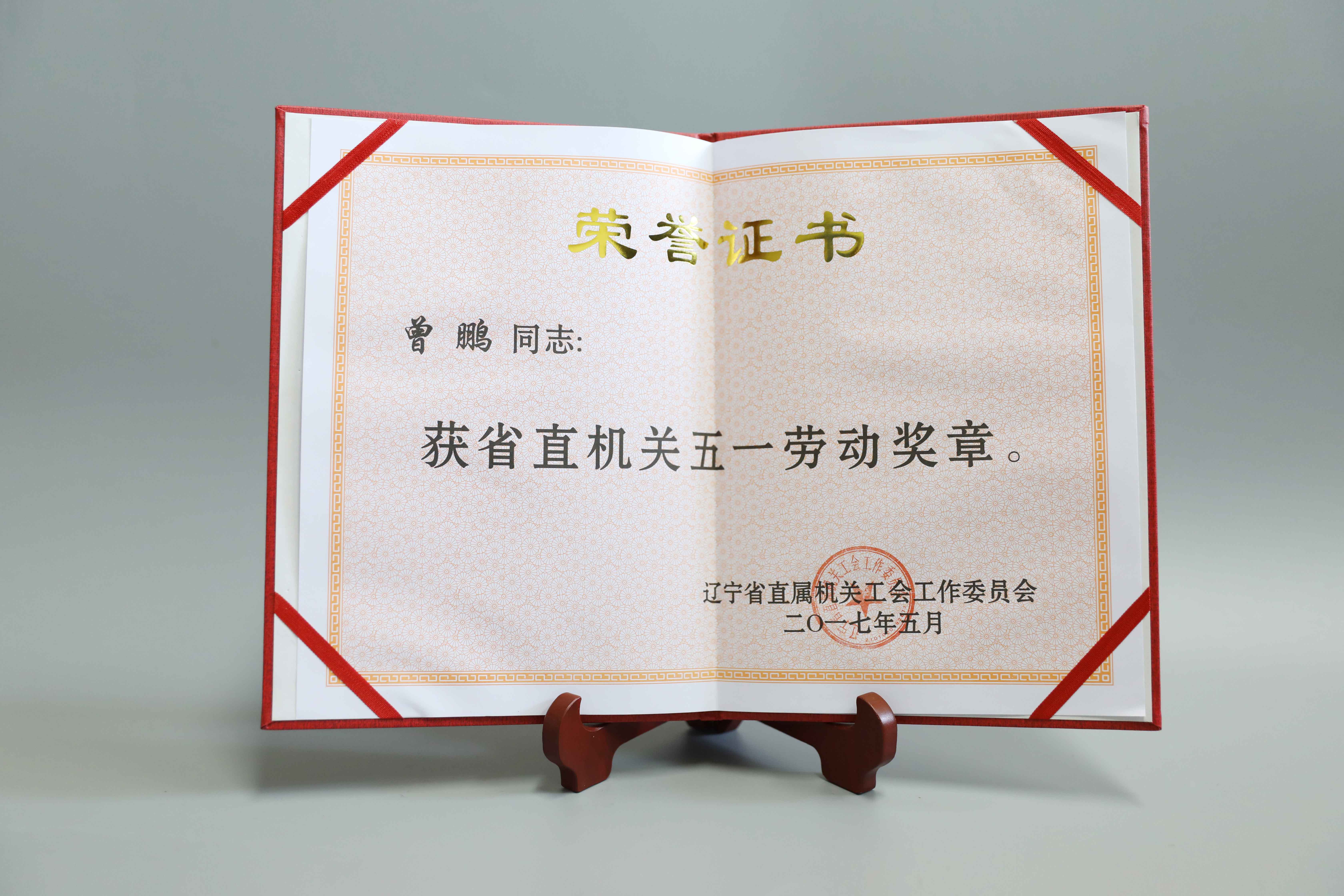 遼寧省直機(jī)關(guān)五一勞動(dòng)獎(jiǎng)?wù)伦C書