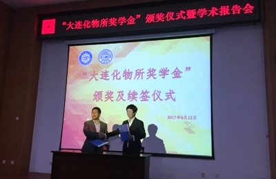 李燦、于吉紅、孫俊奇和熊博暉分別為獲獎學(xué)生頒發(fā)獲獎證書。熊博暉與孫俊奇代表雙方續(xù)簽吉林大學(xué)化學(xué)學(xué)院2017-2020年的“大連化物所獎學(xué)金”協(xié)議。