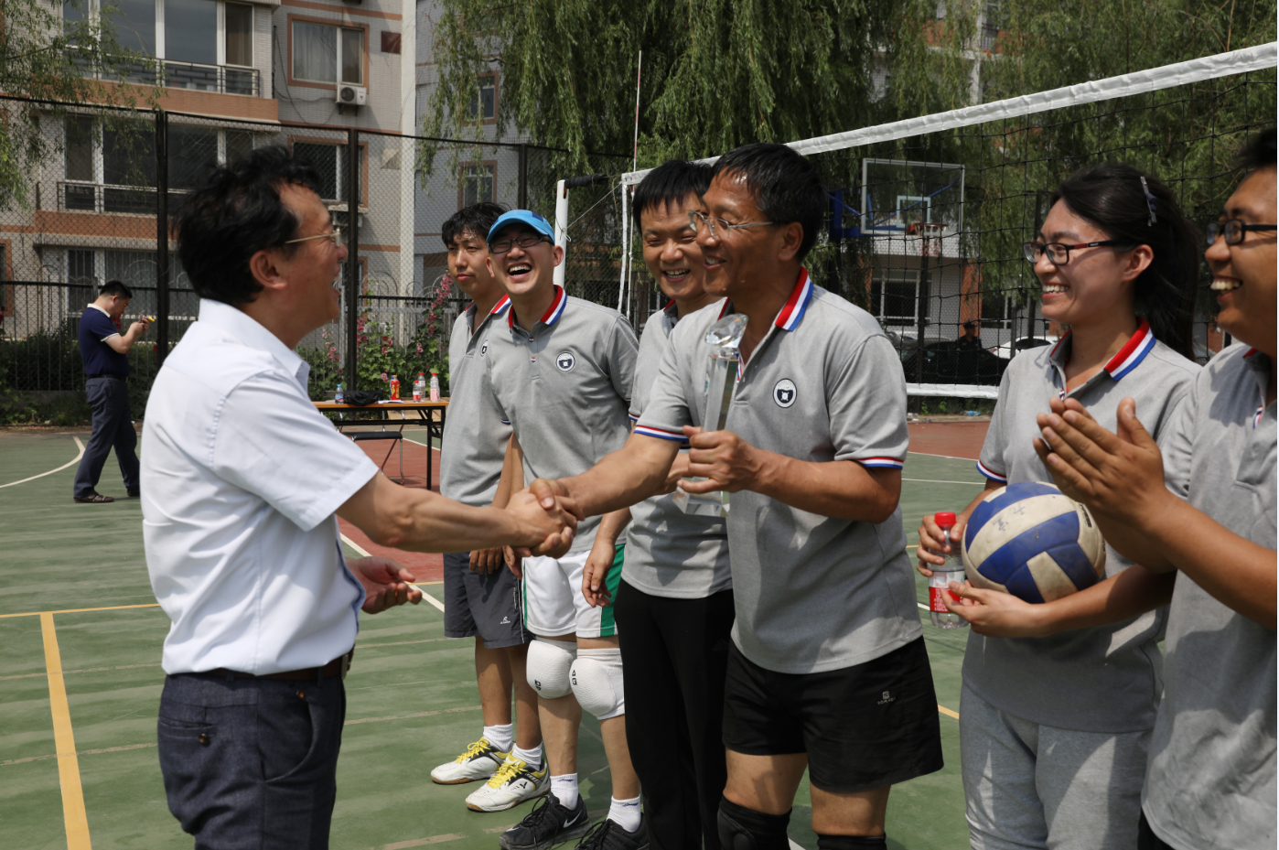 比賽結(jié)束后,沈陽(yáng)自動(dòng)化所工會(huì)主席孫雷宣布了比賽結(jié)果,黨委書(shū)記兼副所長(zhǎng)桑子剛為獲獎(jiǎng)球隊(duì)頒發(fā)了獎(jiǎng)杯,并與隊(duì)員合影留念。