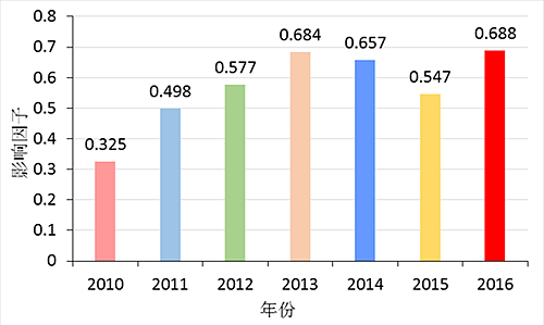 通過以上舉措,近年來CJOL期刊各項指標穩(wěn)步提升。每年收稿約400篇,國際投稿約占20%(稿源來自20余個國家,包括一些發(fā)達國家的作者);期刊總體質(zhì)量和各項指標穩(wěn)步提升,影響因子總體增加;在中國科學院科學出版基金的期刊排行榜上名次顯著提升,連續(xù)三年獲得中國科學院出版基金二等獎;2012-2016年連續(xù)被評為“中國最具國際影響力學術(shù)期刊”,2014年、2016年先后兩次獲得中國科協(xié)“中國科技期刊國際影響力提升計劃”項目支持,累計支持經(jīng)費225萬元。