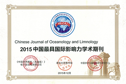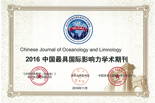 6月14日,Web of Science發(fā)布了最新SCI期刊影響因子,由中國海洋湖沼學會主辦、中國科學院海洋研究所承辦的期刊《中國海洋湖沼學報》(英文版)(Chinese Journal of Oceanology and Limnology, CJOL)最新影響因子為0.688,創(chuàng)歷史新高,較2015年影響因子(0.547)增長25.77%,總被引頻次為1227次,5年平均影響因子為0.819。