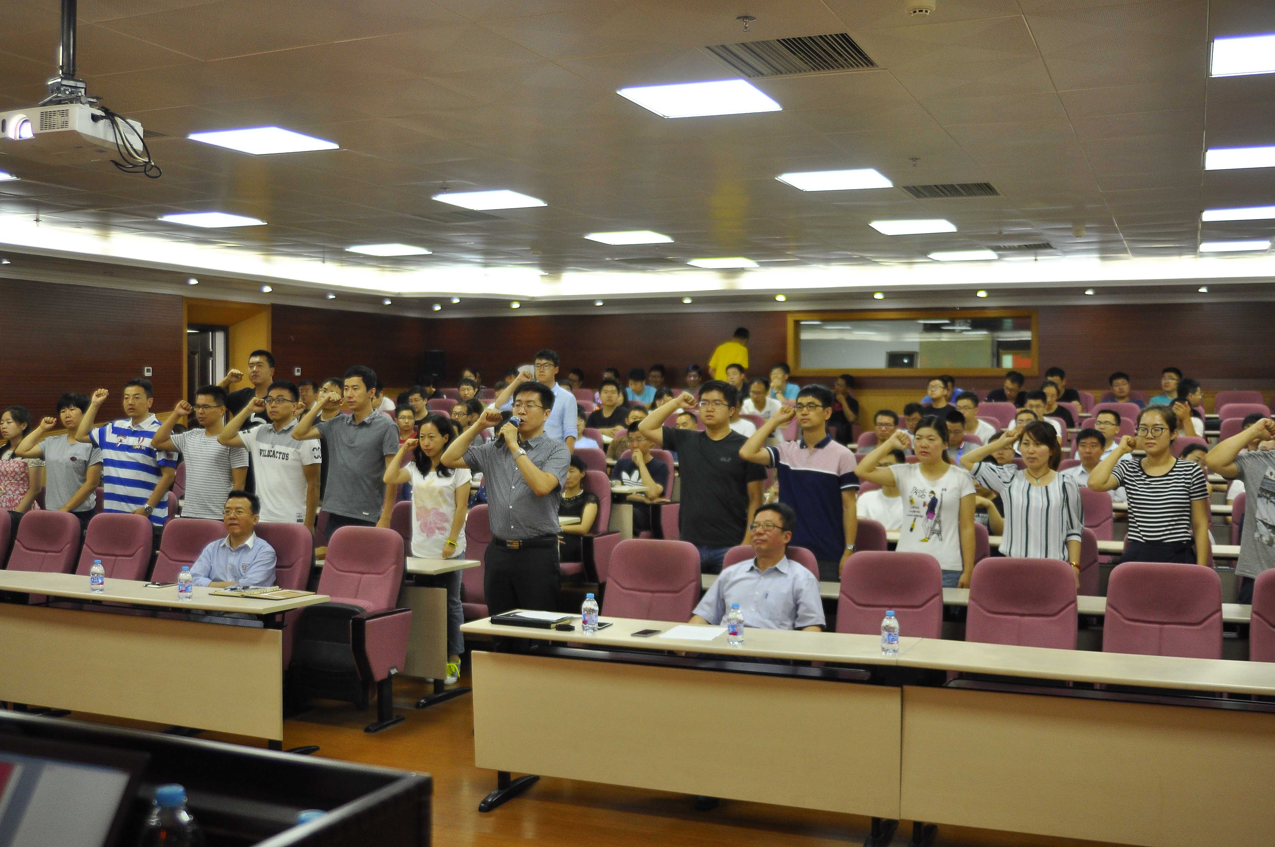 會(huì)上,梁波宣讀了2017年度新發(fā)展和轉(zhuǎn)正黨員名單。他鼓勵(lì)新發(fā)展和轉(zhuǎn)正黨員在各自崗位努力工作,踐行“四講四有”標(biāo)準(zhǔn),充分發(fā)揮黨員模范帶頭作用,以蔣新松院士為榜樣,追求真理,勇于開(kāi)拓,肩負(fù)起新時(shí)期科研人的使命。隨后,黨辦主任王明輝帶領(lǐng)16名新發(fā)展黨員在黨旗下莊嚴(yán)宣誓。