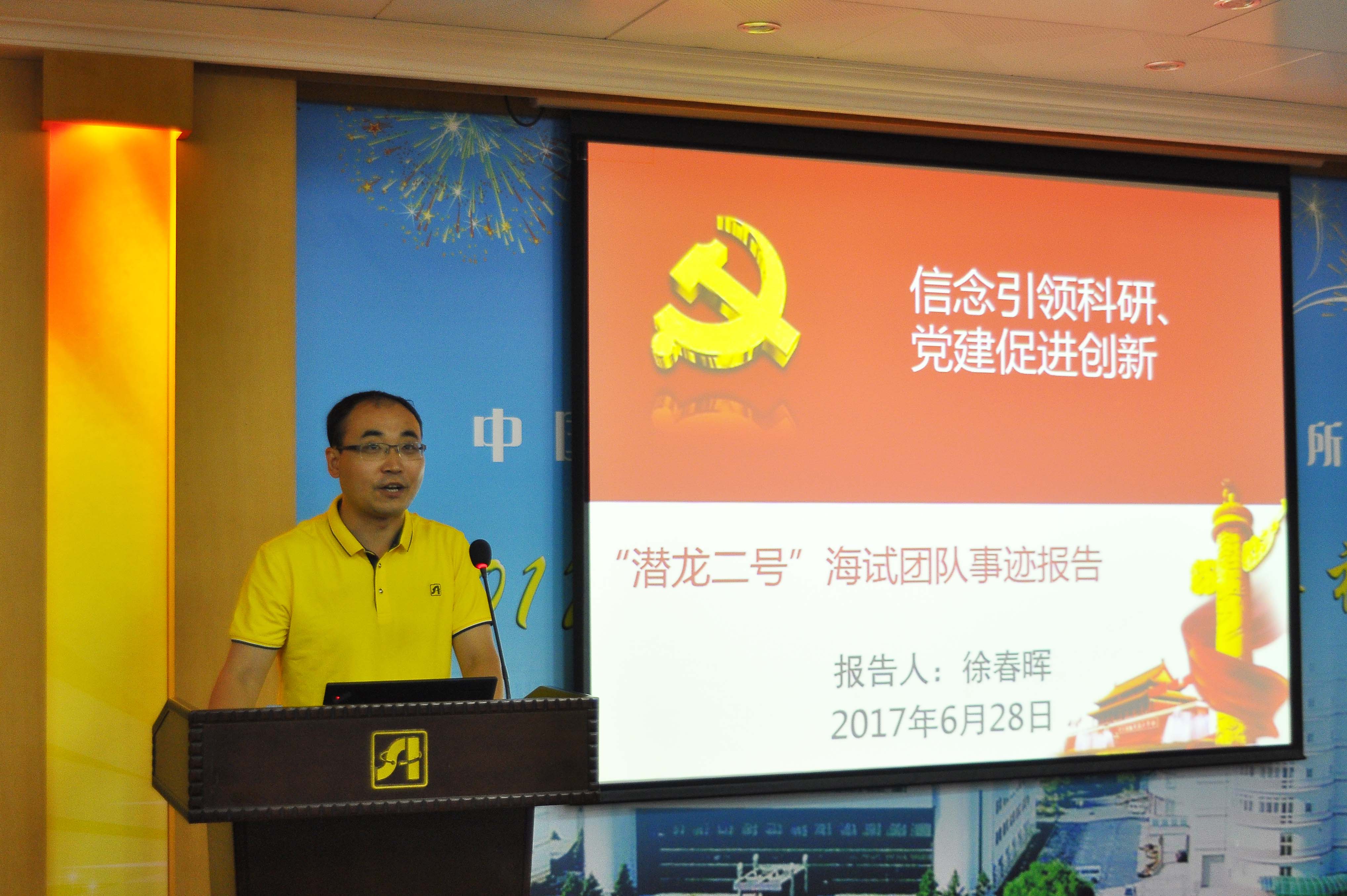 為深入貫徹黨的十八屆六中全會(huì)精神,推動(dòng)“兩學(xué)一做”學(xué)習(xí)教育常態(tài)化制度化,中科院在全院黨員中開(kāi)展了“信念引領(lǐng)科研、黨建促進(jìn)創(chuàng)新”主題交流研討活動(dòng),所黨委決定結(jié)合工作實(shí)際選樹(shù)典型,開(kāi)展了主題事跡報(bào)告。水下機(jī)器人研究室副研究員徐春暉以《砥礪創(chuàng)新、潛龍?zhí)胶!窞轭},代表“潛龍二號(hào)”團(tuán)隊(duì)作了主題事跡報(bào)告。他講述了“潛龍二號(hào)”團(tuán)隊(duì)研發(fā)和試驗(yàn)的歷程,通過(guò)一個(gè)個(gè)生動(dòng)的事跡展現(xiàn)了團(tuán)隊(duì)中全體同志勇于拼搏、不畏艱辛、永不放棄、協(xié)作創(chuàng)新的崇高品質(zhì)。