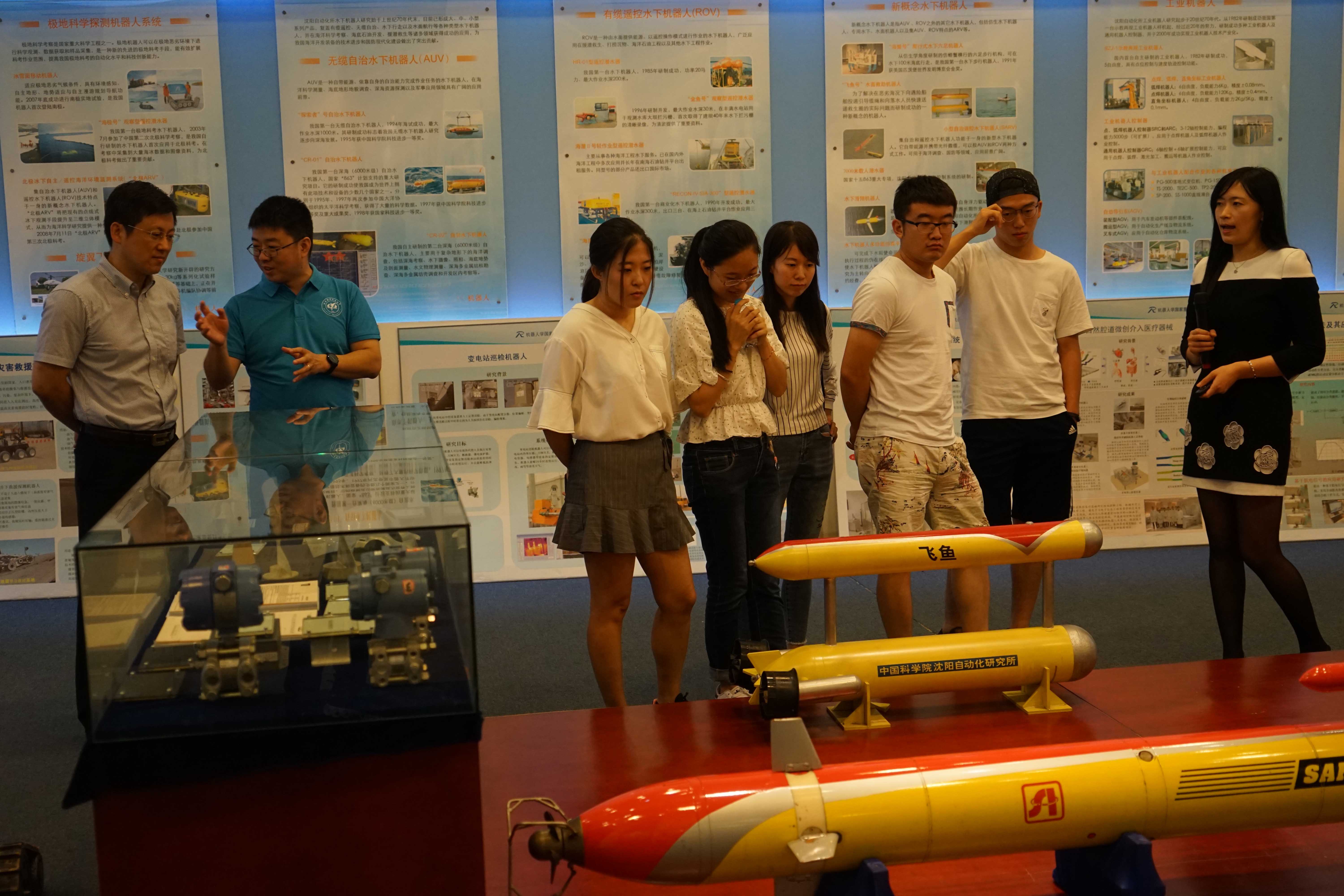 會(huì)后,北京航空航天大學(xué)師生一行參觀了沈陽(yáng)自動(dòng)化所科技成果展館和水下條件實(shí)驗(yàn)室,與研究所科研人員進(jìn)行了現(xiàn)場(chǎng)交流,深入了解了沈陽(yáng)自動(dòng)化所的發(fā)展歷史、研究領(lǐng)域和科研成果。同學(xué)們表示,希望今后有機(jī)會(huì)來(lái)沈陽(yáng)自動(dòng)化所實(shí)習(xí)或工作,為國(guó)家機(jī)器人事業(yè)做出自己的貢獻(xiàn)。(人教處)