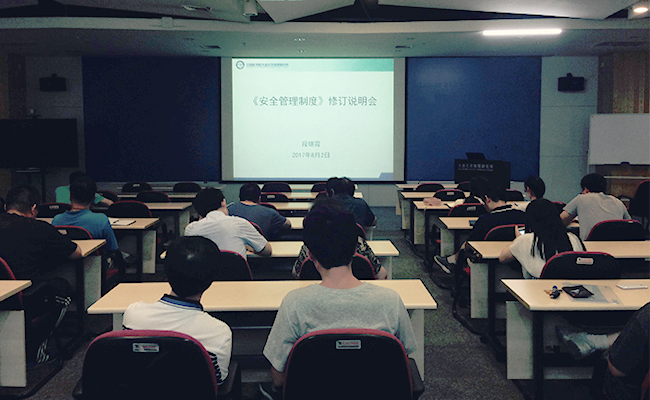 會上首先介紹了本次《安全管理制度》修訂的原則和修訂過程,隨后就制度修訂中的要點進行詳細說明,并對部分條款展開討論。