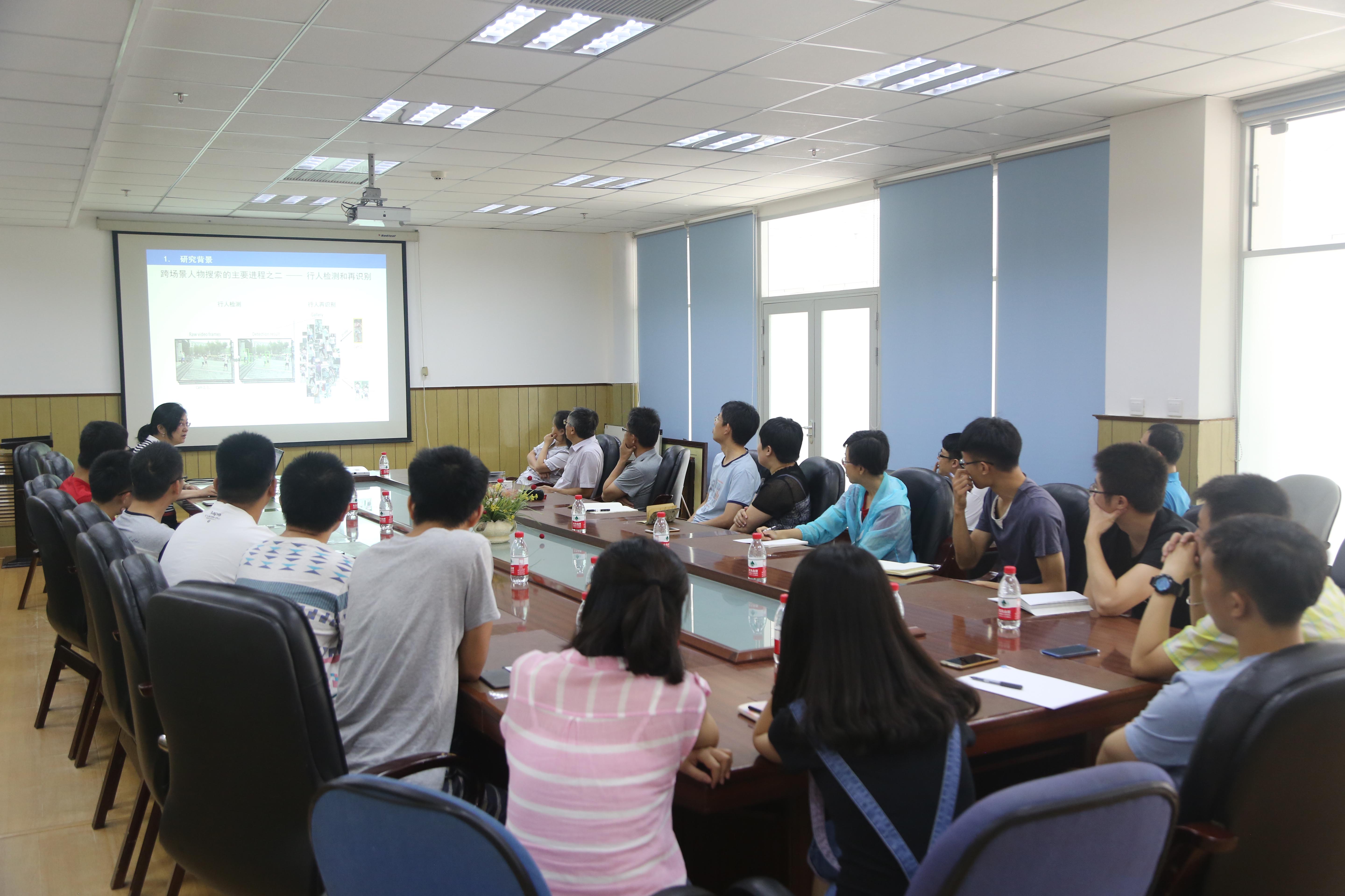 孔祥維為與會(huì)人員作了內(nèi)容豐富的報(bào)告。她介紹了所在團(tuán)隊(duì)在“跨場景人物搜索”、“跨媒體計(jì)算”和“信息安全和信息對抗”等方面開展的工作和取得的研究成果。報(bào)告會(huì)后,孔祥維和與會(huì)人員進(jìn)行了熱烈討論。