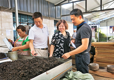 揭牌/簽約儀式前,李瑞峰還陪同參會(huì)嘉賓參觀考察了普洱知味茶廠生產(chǎn)車間和荒田村“綠色農(nóng)業(yè)示范基地”茶山現(xiàn)場(chǎng),與車間工人和茶農(nóng)針對(duì)茶葉病蟲、茶葉加工、農(nóng)藥殘留及檢測(cè)方法等方面進(jìn)行了細(xì)致和深入的交流。