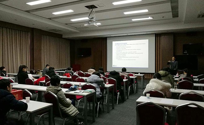 黃濤在報告中詳細介紹了美國知識產權的基礎內容和特殊問題、美國知識產權保護基本策略與布局方法、美國專利申請流程及注意事項、美國專利申請撰寫及答復要點,并對比了中國與美國在專利申請過程中的區(qū)別。此次培訓使大連化物所知識產權專員對美國專利的申請途徑、步驟、政策有了更加深刻的認識,為大連化物所科研人員申請美國專利的順利進行打下了良好的基礎。