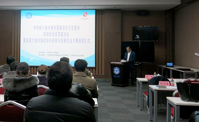 1月9日上午,科技創(chuàng)業(yè)政策宣講會(huì)暨首屆大連市高校和科研院所創(chuàng)新創(chuàng)業(yè)大賽(以下簡稱“雙創(chuàng)大賽”)頒獎(jiǎng)儀式在中國科學(xué)院大連化學(xué)物理研究所國家雙創(chuàng)示范基地舉行。大連市創(chuàng)業(yè)促進(jìn)委員會(huì)、發(fā)改委、科技局、甘井子區(qū)發(fā)改委、高新區(qū)科技創(chuàng)新局和創(chuàng)業(yè)服務(wù)中心,大連交通大學(xué),大連大學(xué)的相關(guān)負(fù)責(zé)人,以及大連化物所黨委副書記、紀(jì)委書記毛志遠(yuǎn),職能和科研部門,中科化物(大連)科技發(fā)展有限公司相關(guān)人員參加活動(dòng)?;顒?dòng)由大連化物所知識(shí)產(chǎn)權(quán)與成果轉(zhuǎn)化處處長張晨主持。