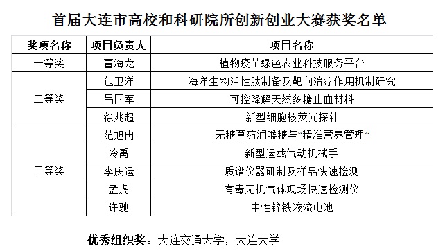 本次雙創(chuàng)大賽由大連市人民政府主辦,大連化物所和大連知你創(chuàng)業(yè)基地共同承辦,大賽歷時(shí)近6個(gè)月,經(jīng)過了策劃、啟動(dòng)、報(bào)名、初審、培訓(xùn)、初賽、決賽等環(huán)節(jié)。通過在大連市的廣泛宣傳及相關(guān)高校的支持,共有來自我市6所高校和大連化物所的近40個(gè)項(xiàng)目報(bào)名參加本次大賽,涵蓋化工新材料、生物醫(yī)藥、智能制造等多個(gè)領(lǐng)域。在大賽舉辦過程中,始終貫徹“把大賽做出成效”的精神,秉承“過程重于結(jié)果”的工作理念,大賽組委會(huì)圍繞大賽舉辦多場培訓(xùn)、專家指導(dǎo)、投資機(jī)構(gòu)對(duì)接等活動(dòng),切實(shí)為提升大連化物所及大連高校參賽人員的創(chuàng)新創(chuàng)業(yè)能力,營造創(chuàng)新創(chuàng)業(yè)氛圍,支撐國家雙創(chuàng)示范基地建設(shè),起到了積極的作用。目前已經(jīng)有3個(gè)獲獎(jiǎng)項(xiàng)目開始與企業(yè)或投資機(jī)構(gòu)進(jìn)行合作洽談。