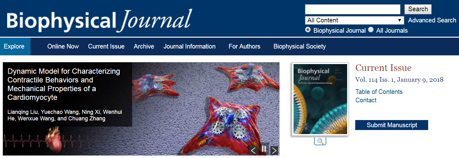 近日,國(guó)際著名學(xué)術(shù)雜志Biophysical Journal(中科院二區(qū)Top類期刊)以亮點(diǎn)論文的形式發(fā)表了中國(guó)科學(xué)院沈陽(yáng)自動(dòng)化研究所微納米課題組在類生命機(jī)器人領(lǐng)域取得的最新成果(Dynamic Model for Characterizing Contractile Behaviors and Mechanical Properties of a Cardiomyocyte, Biophysical Journal, Vol.114(1), pp.188-200, 2018. DOI: http://dx.doi.org/10.1016/j.bpj.2017.11.002, http://www.cell.com/biophysj/home)。