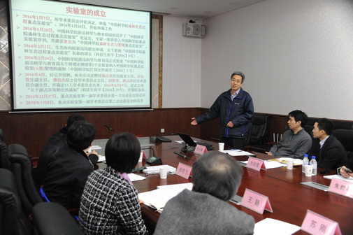 郝占慶匯報森林生態(tài)與管理院重點實驗室工作