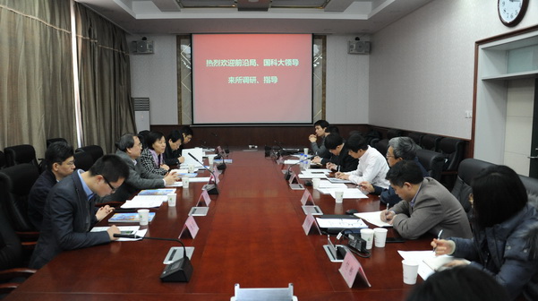 首先,金昌杰對王穎、蘇剛等領(lǐng)導(dǎo)到訪表示熱烈的歡迎與衷心的感謝。隨后,朱教君對研究所基本情況、“一三五”規(guī)劃的實施、特色研究所建設(shè)、研究生教育等方面進行了介紹,尤其是就“三大突破”取得進展、研究生教育的特色做法和學(xué)位點評估及成績等方面做了重點闡述。他還就申請國家重點實驗室、參與國科大現(xiàn)代農(nóng)業(yè)科學(xué)學(xué)院建設(shè)、成立東北亞資源生態(tài)環(huán)境學(xué)院等方面提出了設(shè)想和建議。