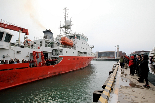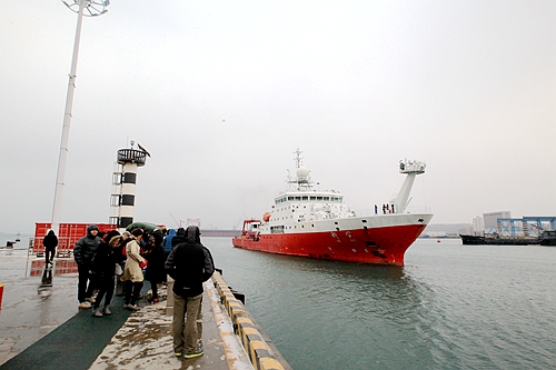 2月7日,“科學”號科考船圓滿完成“西太主流系潛標觀測網維護及升級”考察航次,順利返回青島母港。所長王凡、黨委書記王輝、胡敦欣院士以及科考船運管中心負責人、相關部門同事到碼頭迎接。