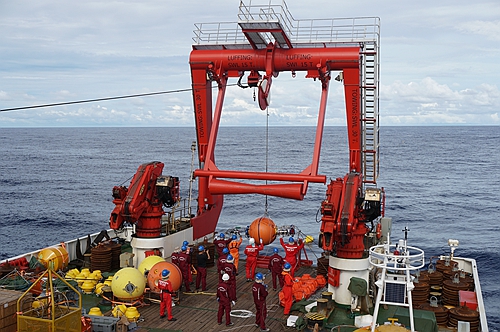 中國科學院院士胡敦欣研究員介紹,西太平洋具有復雜多變的環(huán)流結構,又有全世界最大的暖水體-西太平洋暖池,可通過調節(jié)大氣環(huán)流進而調控季風、臺風及我國的降雨情況,并對全球氣候具有重要影響。本航次的成功實施,極大推動了由我國為主發(fā)起、8個國家19個研究機構參與的NPOCE大型國際合作計劃(http://npoce.qdio.ac.cn/)的發(fā)展。該計劃致力于通過強化觀測、機理研究和數值模擬手段提高對西太平洋海洋環(huán)流與氣候的認知能力,其成功發(fā)起和實施標志著我國在西太平洋環(huán)流與氣候領域的研究實現了從跟蹤到引領的歷史性跨越。