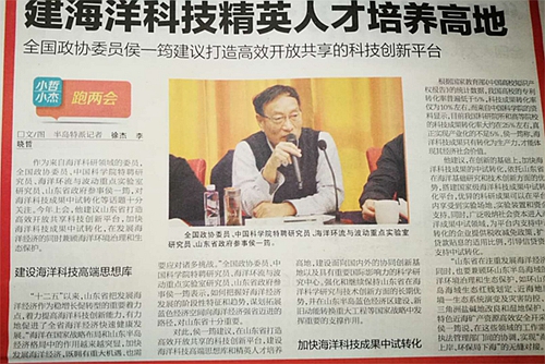 赴京出席本次全國政協(xié)會議之前,侯一筠委員積極參加全國政協(xié)關(guān)于“推進(jìn)21世紀(jì)海上絲綢之路建設(shè)”、“充分發(fā)揮海南在建設(shè)‘新絲路’中的戰(zhàn)略支點作用”、“全國沿海城市垃圾處理問題”等專題調(diào)研,重點深入青島相關(guān)科研院所高校,圍繞海洋科技、經(jīng)濟(jì)和社會發(fā)展等方面的熱點、難點問題展開深入調(diào)研,廣泛聽取社會各界的意見和呼聲。